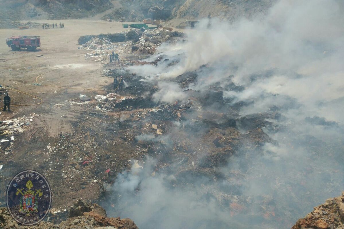 Los bomberos emplean seis horas y media en extinguir el incendio del vertedero de la Fuente del Sapo